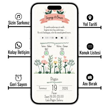 ✅ Müzik ve video ekleme ile davetiyenize duygusal bir dokunuş katın.